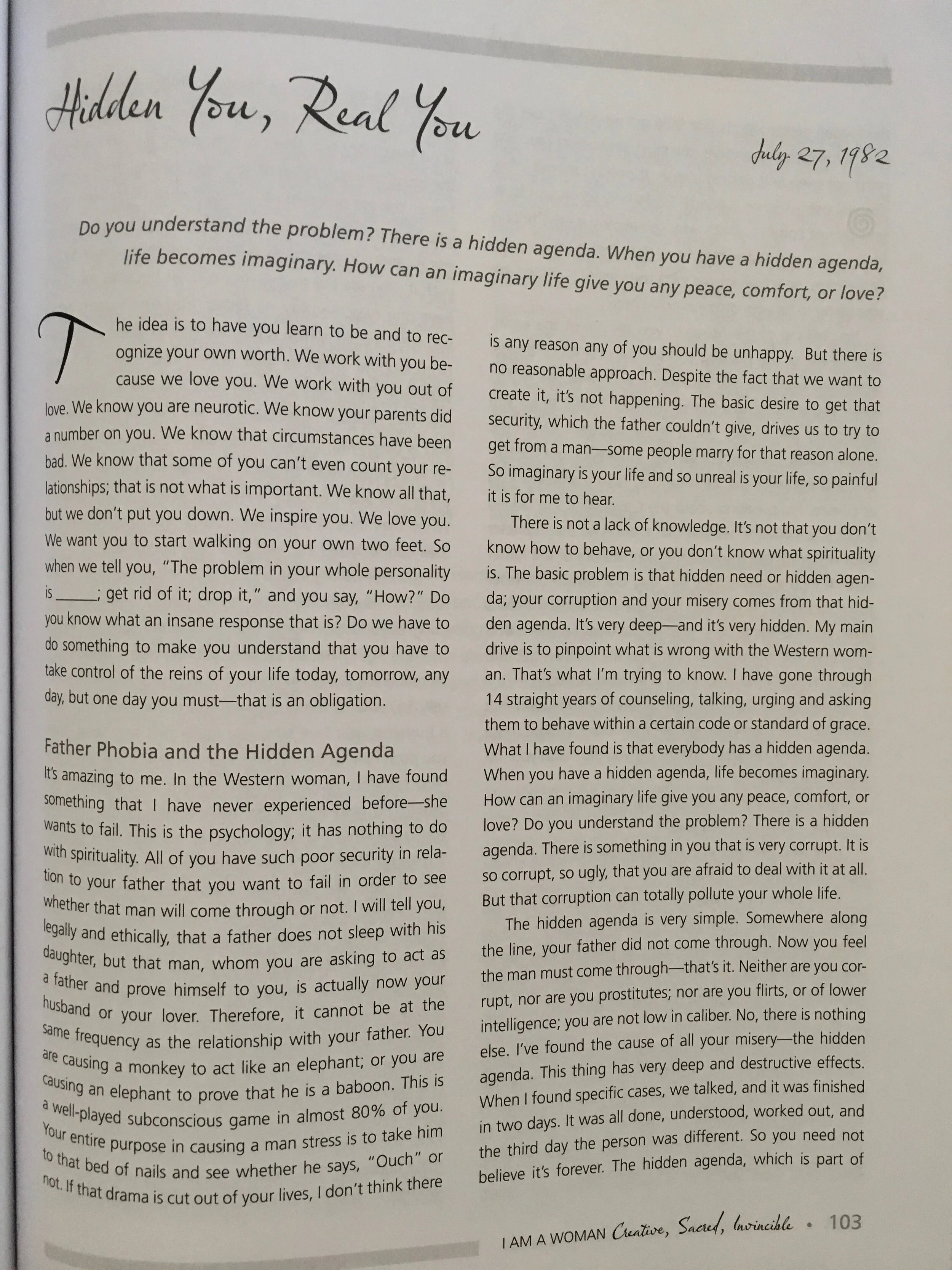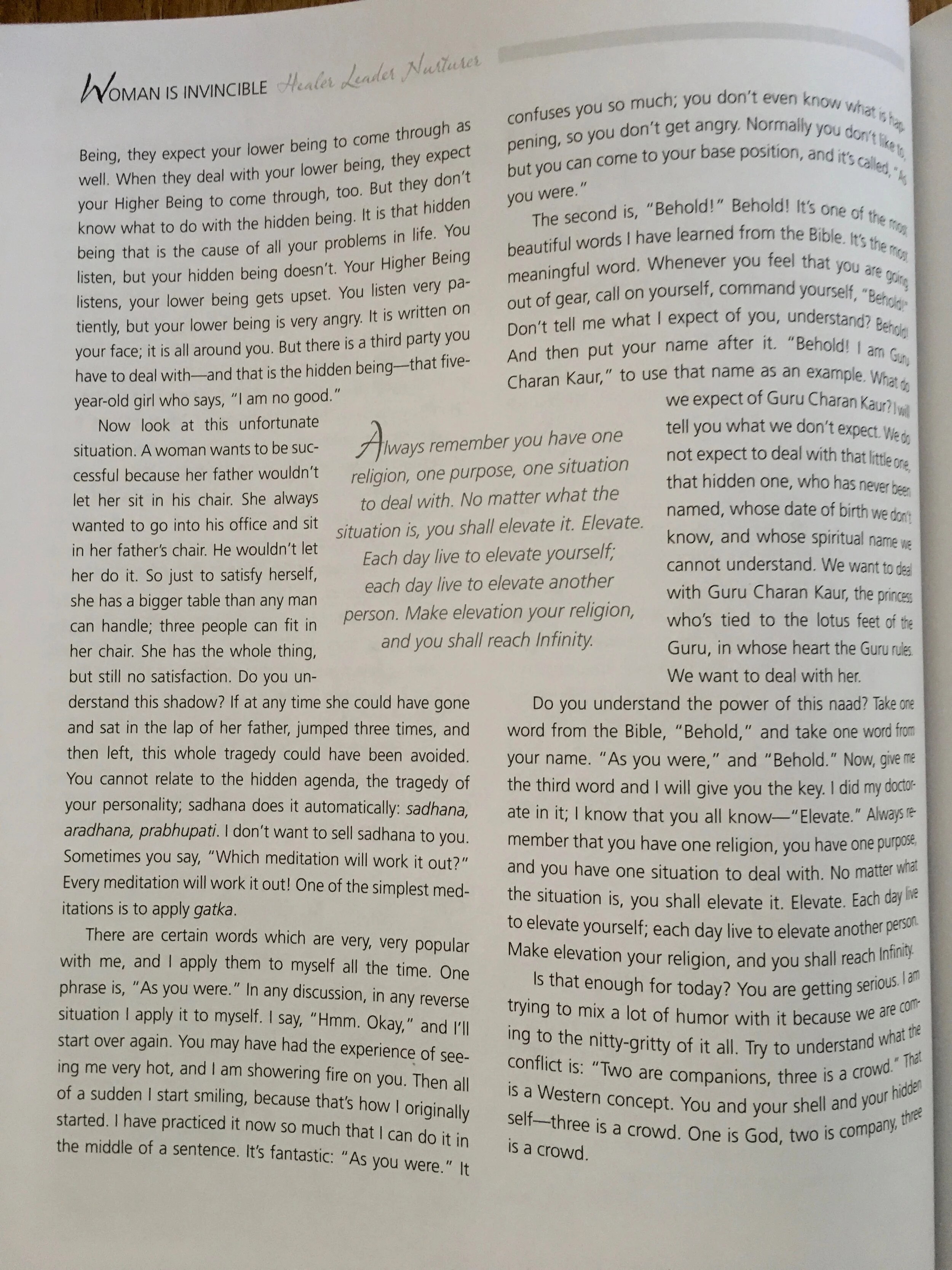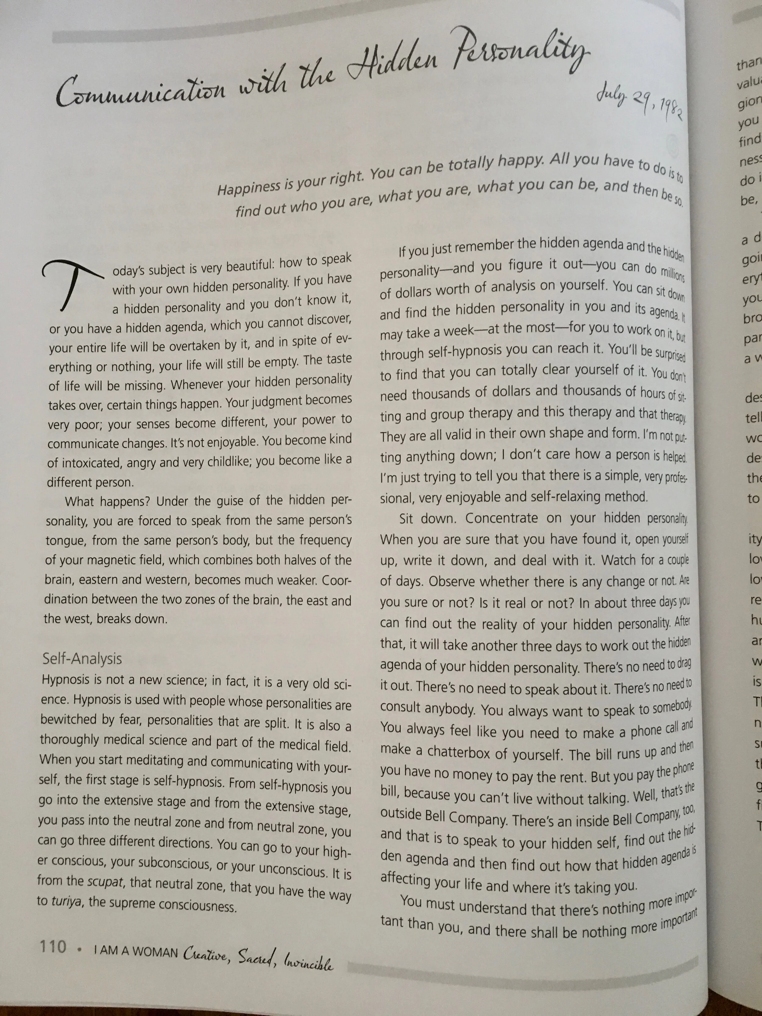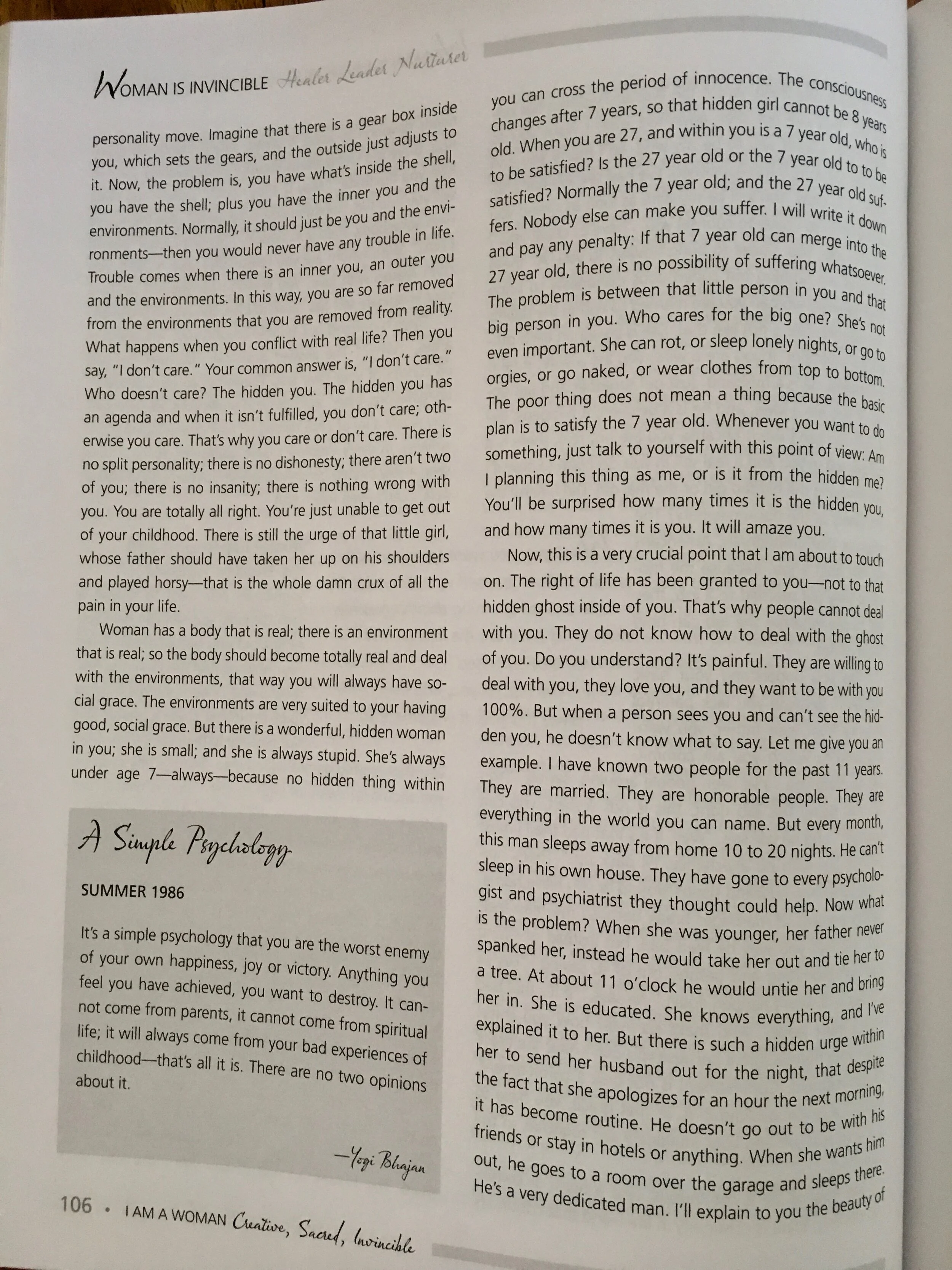 Hidden Self lectures from Yogi Bhajan from the Reader component of I am a Woman - Creative, Sacred and Invincible.